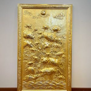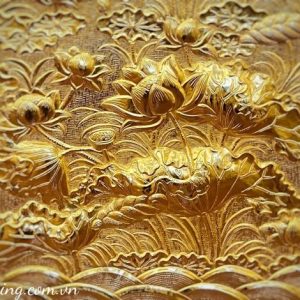 Bức tranh này được chính tay Thầy phong thuỷ Thế Giới- Nghệ nhân quốc gia Thiên Hải chế tác nên. Những mảng vàng sáng tối uyển chuyển tạo nên một bức tranh vô cùng sống động, với những bông sen đưa mình trước gió. Những đóa sen bọc vàng lấp lánh dưới ánh trăng càng tôn lên vẻ đẹp thanh cao, thuần khiết và quý phái.