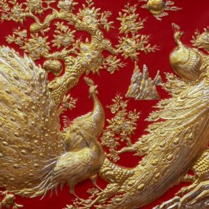 – Chim công là loài chim cao quý, thể hiện sự thịnh vượng, phú quý. Đây là một loài chim đặc biệt chung thủy, suốt đời chỉ ghép đôi với một con mái. Nên bức tranh còn biểu tượng sự chung thủy trong tình yêu, sự bền chặt gắn kết giữa hai người.