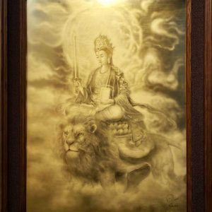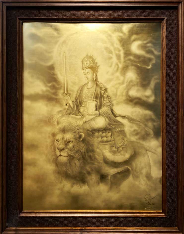 Trong thế giới tâm linh, Văn Thù Sư Lợi Bồ Tát là biểu tượng của trí tuệ vô thượng, khả năng thấu thị mọi lẽ thực hư trên đời. Qua đôi bàn tay tài hoa của tác giả, hình ảnh Ngài hiện lên đầy uy nghi nhưng cũng vô cùng thanh thoát.